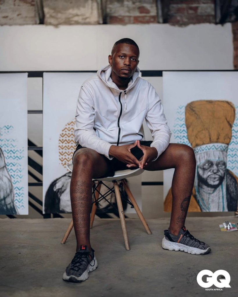 I think, I’ve always known this is what I wanted to be but were I grew up we didn’t access to the information and knowledge to these things. From when I knew I could draw I knew I wanted to this for the rest of my life. You get to varsity and the one question you have to ask yourself is what do you want to be remembered for. I wanted to be someone who can say that my people could see themselves in but could also access and that birthed the style and identity of the artists that you see and experience today. Also I released that I came from a very rich background in knowledge on blackness, culture, isiXhosa. When I started meeting people I realised people didn’t have these same experiences as me but still wanted a space where they felt they belong so I’m an entry point to understanding the blackness and culture from an artistic lens.